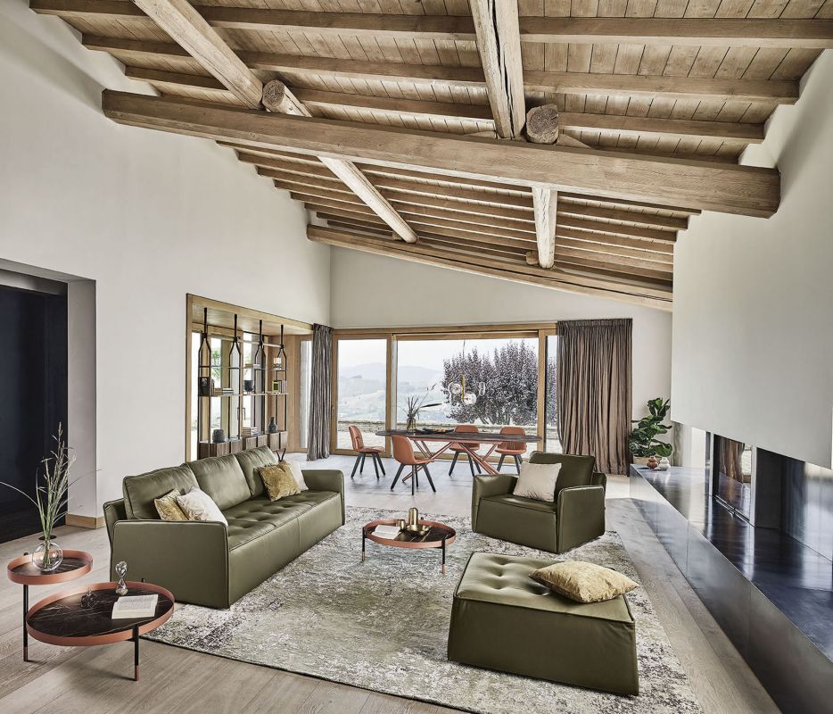 Il suo design compatto e le impunture lo rendono un modello moderno e allo stesso tempo indiscutibilmente elegante. Braccioli e schienali sottili racchiudono le forme imbottite e generose. Le linee minimal della struttura e le sedute alte sono una combinazione perfetta per il relax.