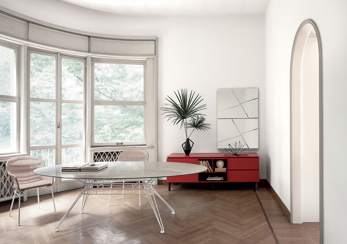 Un grande trend del 2020 è il minimalismo, che tradotto per la zona living significa scegliere pochi complementi di grandi dimensioni da posizionare in modo da lasciare anche degli spazi liberi. Spazi dove dedicarsi alle attività che abbiamo riscoperto, dai workout da casa alla cura delle piante da interni, ma anche spazi liberi per le ispirazioni che verranno in futuro. I tavoli per salotti moderni, quindi, sono tavoli grandi con piani tondi oppure ovali, senza spigoli per un effetto più arioso e armonioso.
