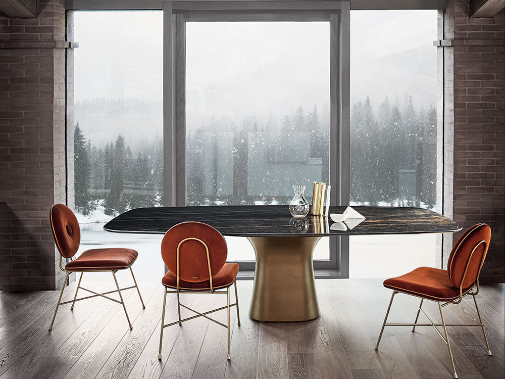 L’alternativa è un tavolo dalle linee più minimaliste come Echo, a cui abbinare le raffinate poltroncine colorate Penelope. In tutti i casi, il legno dimostra la sua versatilità e dona calore all’ambiente.