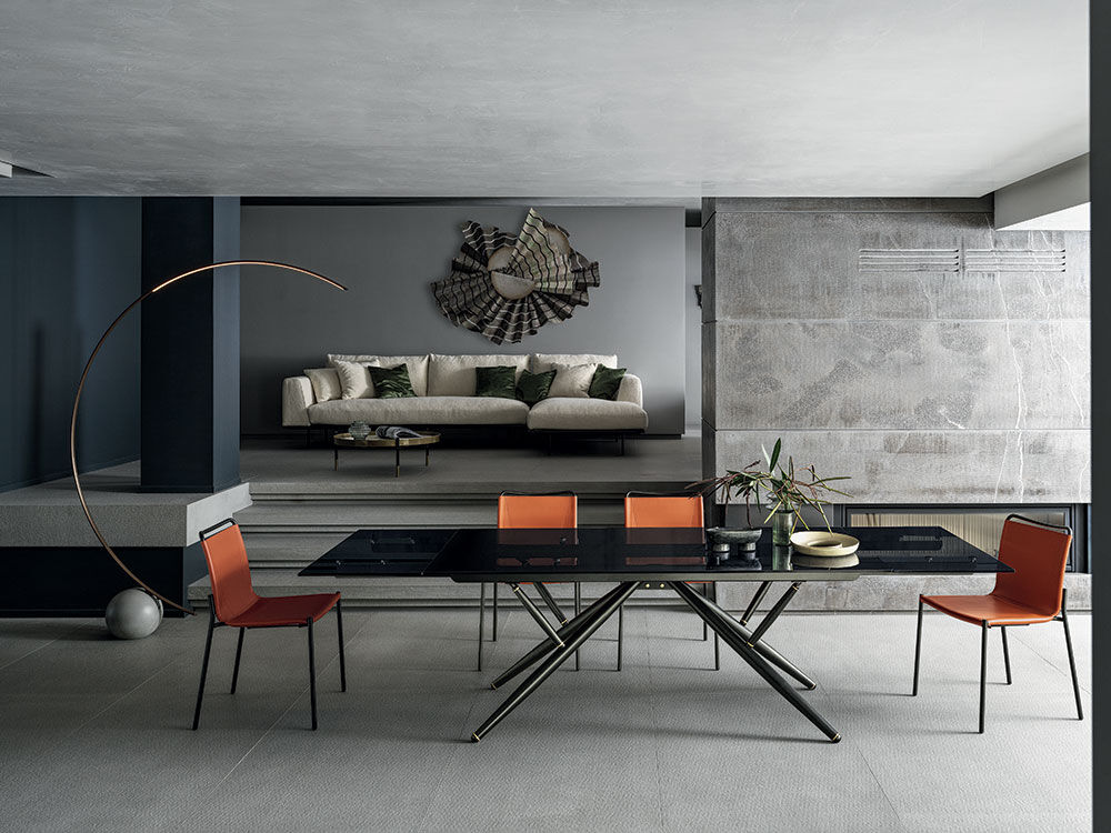 Accanto a essenze pregiate come il legno di noce e quello di rovere massello, al sofisticato cristallo e alla Pelle Premium, Bontempi propone infatti materiali brevettati come il SuperMarmo e la SuperCeramica, che elevano le performance degli originali senza perderne il fascino – mentre alcuni dei suoi modelli iconici si rinnovano periodicamente con dettagli inediti e nuove varianti cromatiche.