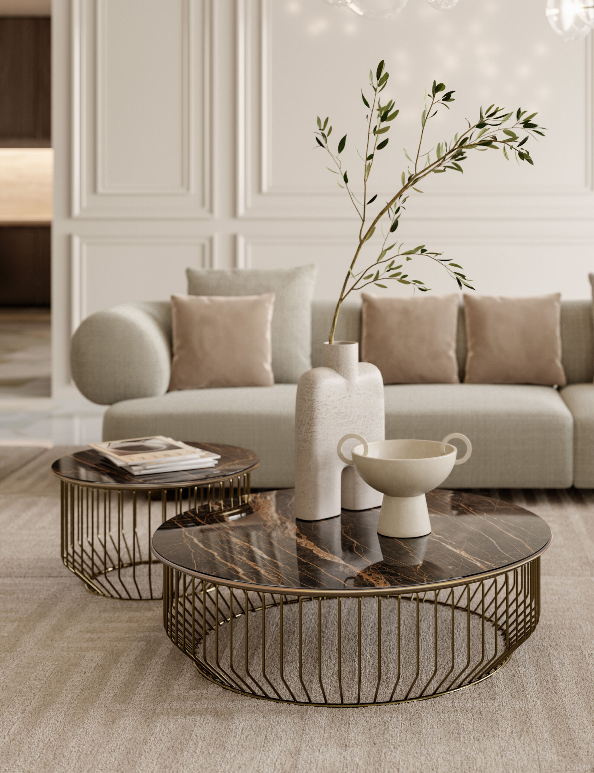 L’arredamento inglese del salotto, offerto dai divani avvolgenti con i braccioli arrotondati e l’inconfondibile trapuntatura, si può rivisitare in chiave contemporanea con la nuova proposta elegante curvy e oversize del divano Franz Bontempi. Il rivestimento variabile e la conformazione extralarge lo rendono un punto focale nel salotto, perfetto per creare un’atmosfera di classe, conferendo agli ambienti un’immediata sensazione di calore e raffinatezza.