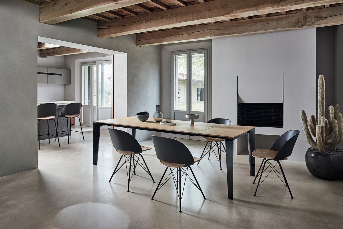 Tavolo allungabile con struttura in Acciaio. piano in Melaminico, Unicolor Antigraffio, Legno impiallacciato, Cristallo, Cristallo Antigraffio, SuperCeramica e SuperMarmo.