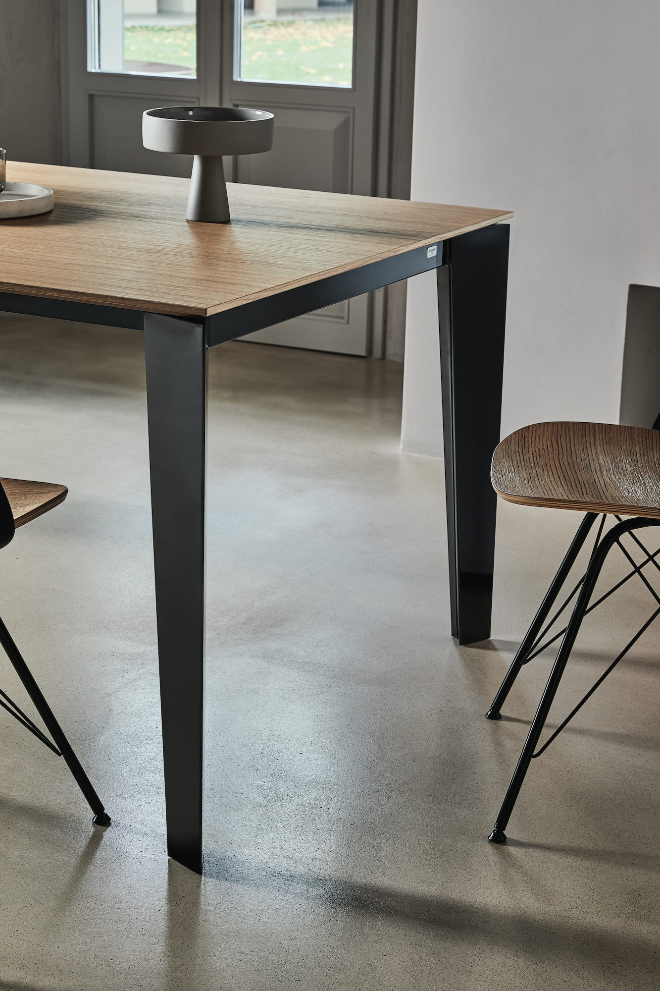 Ausziehbarer Tisch mit Stahlgestell. Tischplatte aus Melamin, Unicolor Kratzfest, Furnierholz, Kristall, kratzfestem Kristall, SuperKeramik und SuperMarmor.