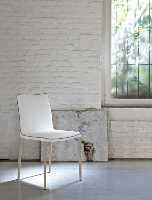 Ergonomischer oder nicht ergonomischer Stuhl mit flexibler Rückenlehne, in zwei Versionen mit lackiertem Stahlgestell und gepolsterter Schale mit Bezug oder mit vollständig gepolstertem Stahlgestell mit ökologischem Leder, Premium-Öko-Leder, tessuto Nordic, Pure Virgin Wool, Samt und Premium-Leder bezogen. Auch in der Version mit gesteppter Rückenlehne erhältlich (nur bei wasserdichten Nubuk-, Ökologieleder- und Premium-Lederbezügen).