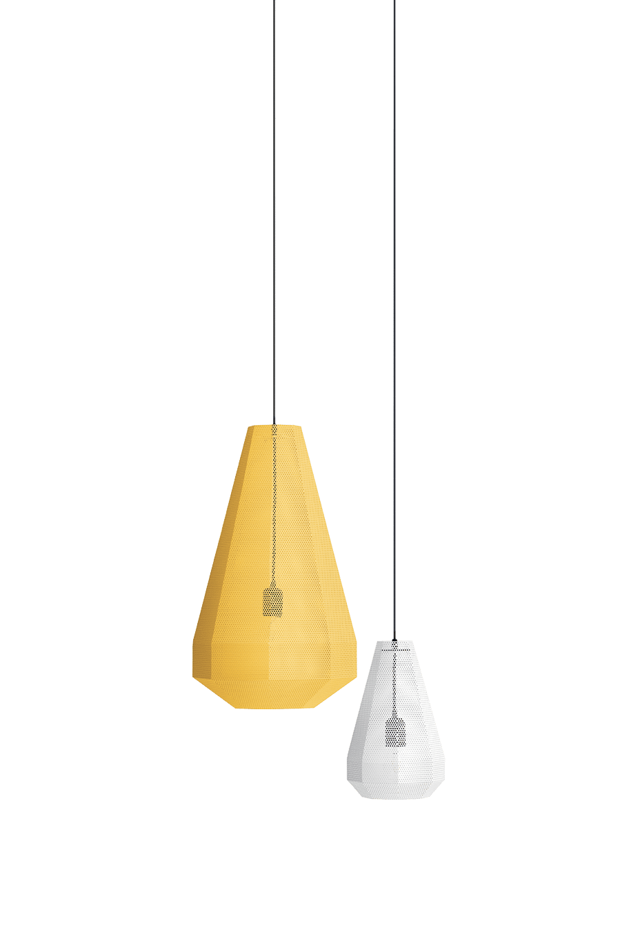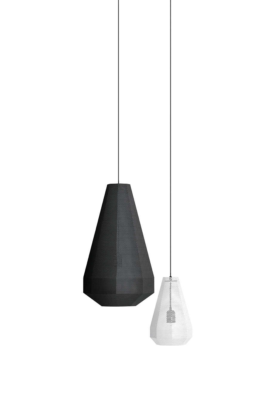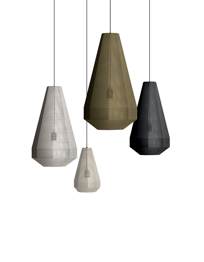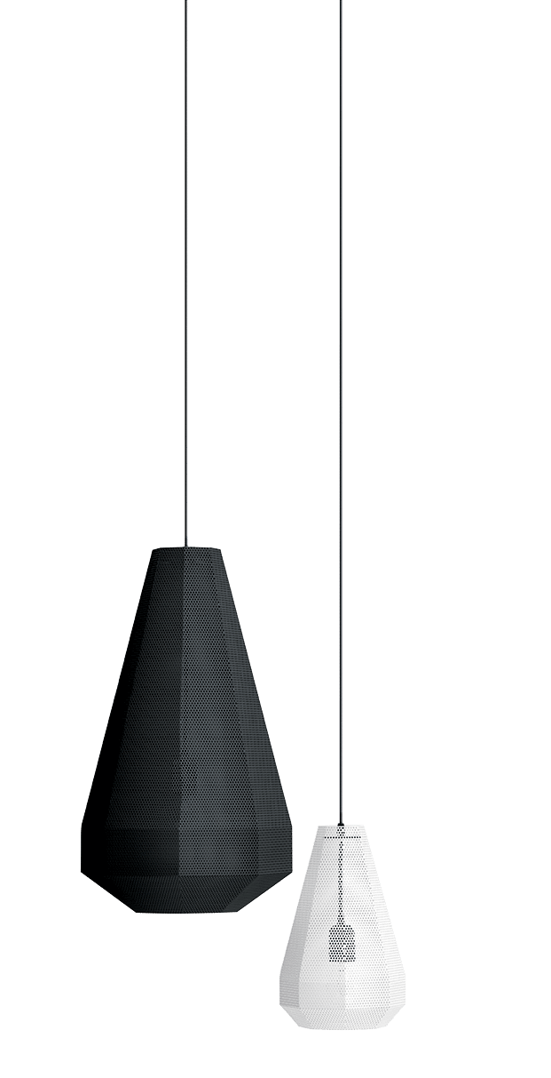 Hängeleuchte mit mattschwarz lackierter Rosette und lackiertem Gehäuse in verschiedenen verfügbaren Ausführungen.