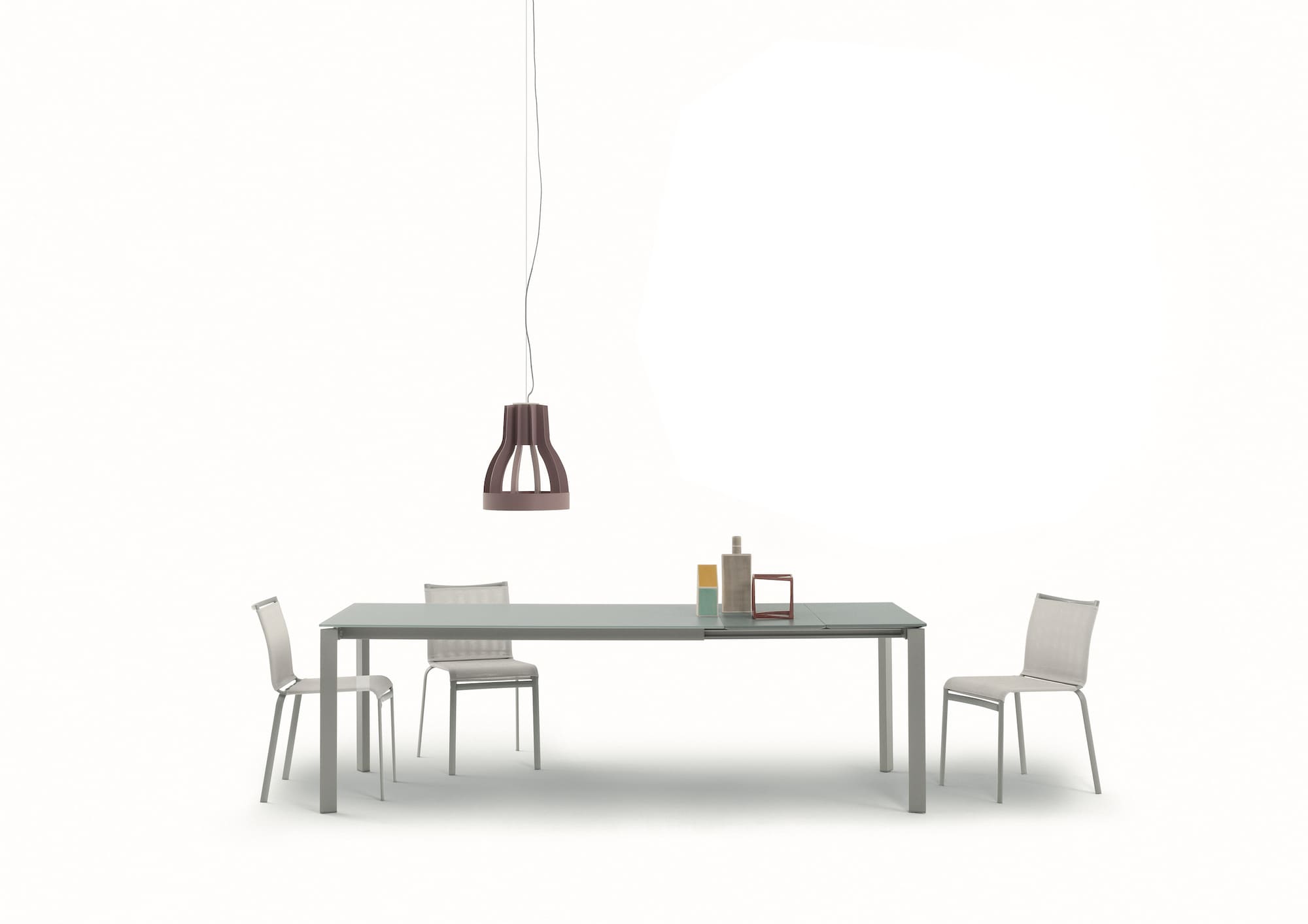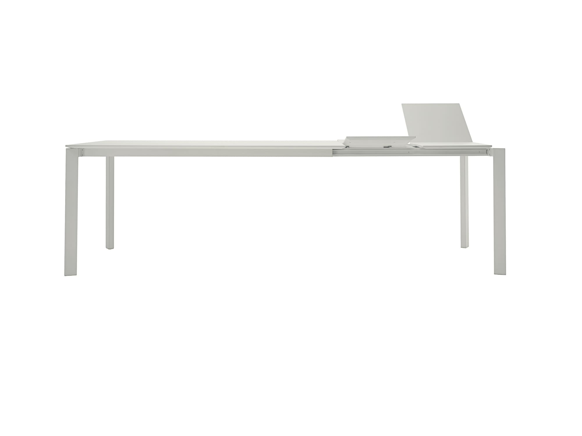 Tavolo allungabile con struttura in Acciaio. piano in Melaminico, Legno laccato, Cristallo, Cristallo Antigraffio e SuperCeramica.