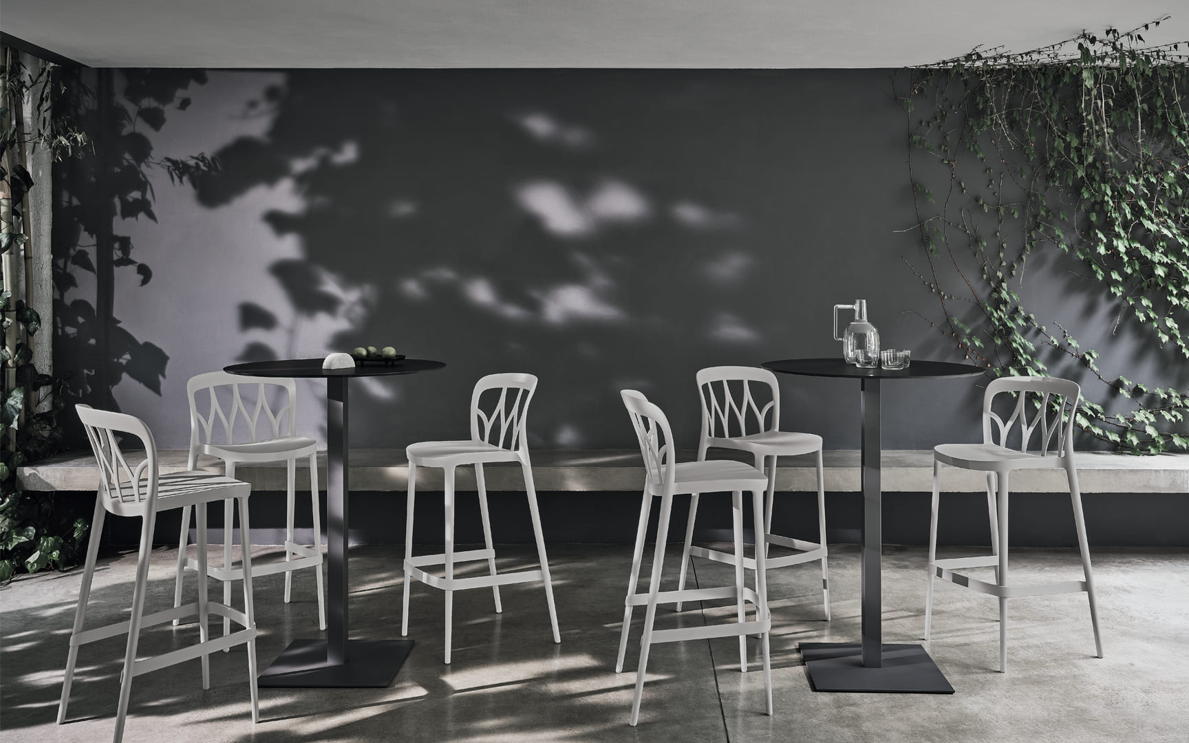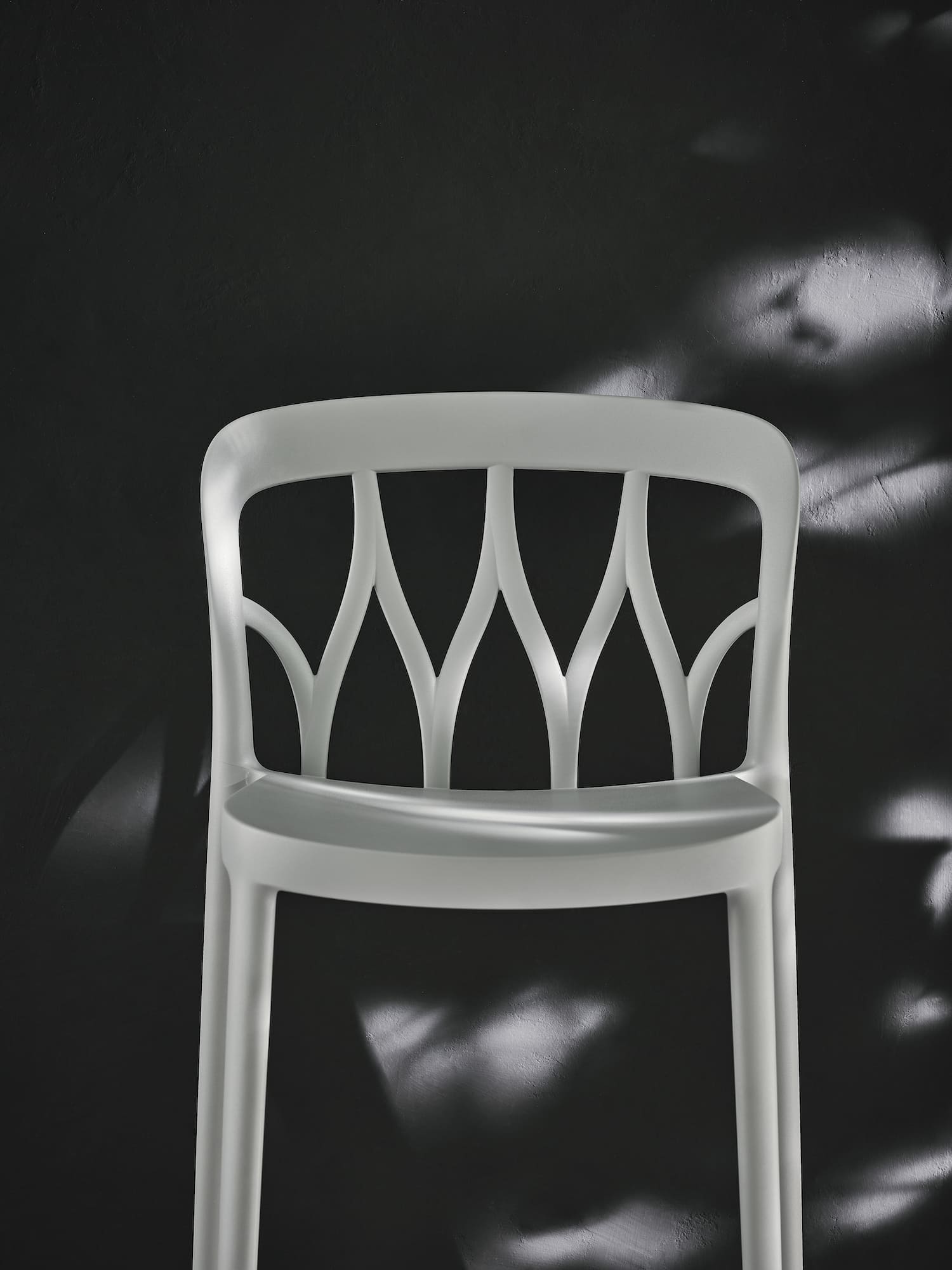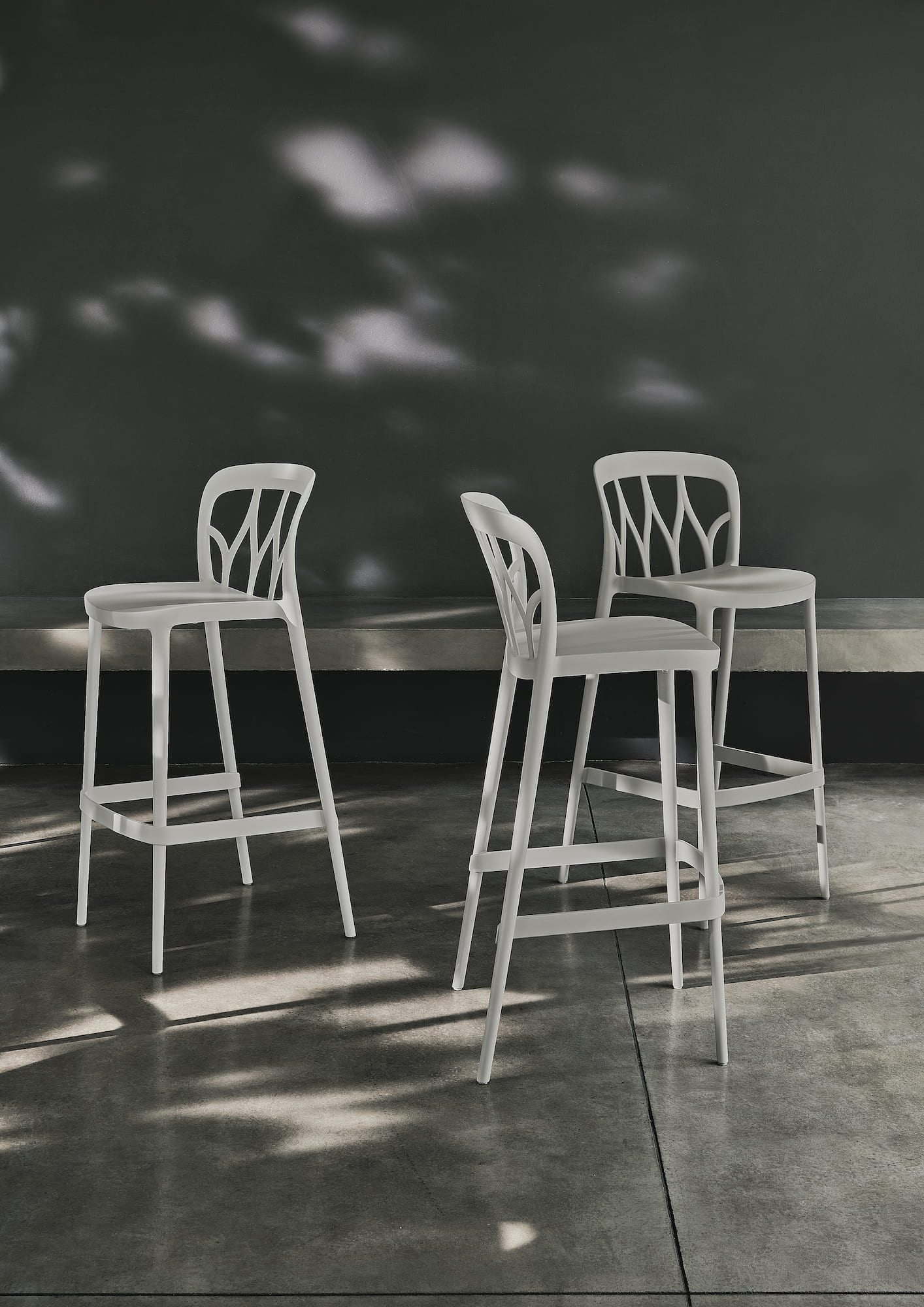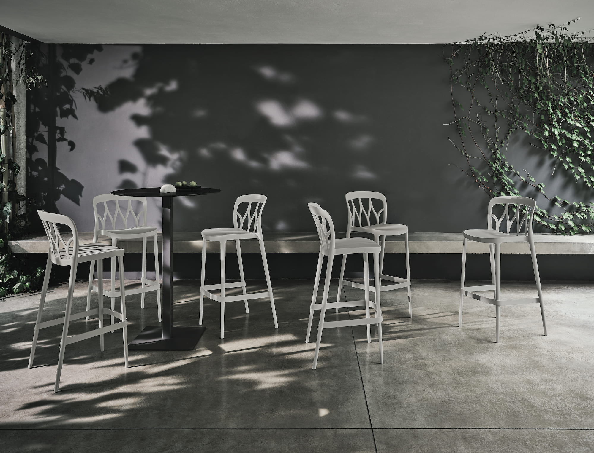 Stacking barstool in polypropylene and recyclable glass fibre.