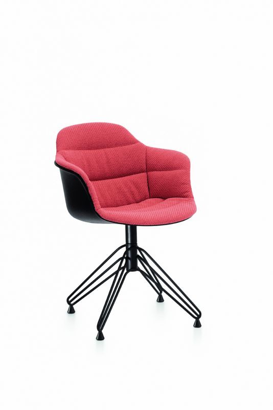Barstool with lacquered Metal frame, triangular legs and round section. Shell in polypropylene upholstered and covered on the front in Premium tessuto Nordic, Pure Virgin Wool, Kvadrat Field fabric, Kvadrat Coda fabric, Premium Nappa Leather