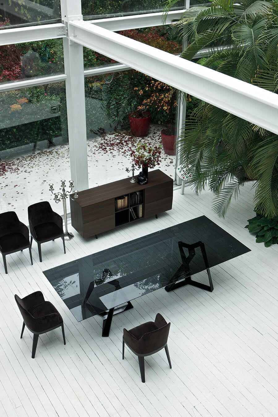 The history of crystal in the world of furniture begins in the mists of time: according to a story by Pliny, the crystal was discovered by chance by some Phoenician merchants in 500 B.C., when they were looking for a fairly durable top to carry very heavy objects. Around 100 B.C. the Romans developed the blowing technique inside the molds to create crystal artefacts. Only in 500/600 A.C. a new process was invented to make glass tops. Since then, crystal is one of the most popular materials in the furniture industry.