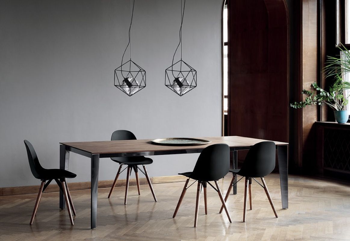 Table with extensions and lacquered Metal frame. Top in melamine, Anti-scratch Unicolor, Veneer wood, Glossy glass Velvet matt anti-scratch lacquered glass, SuperCeramic and SuperMarble