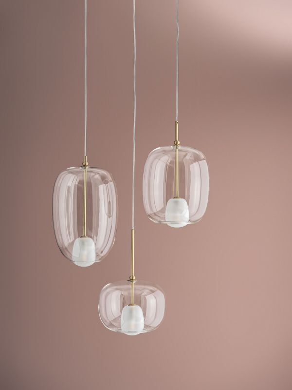 Lámpara de suspensión con florón y estructura de latón natural y cristal de borosilicato y lámpara de suspensión para composiciones en racimo - Se puede combinar al florón múltiple 56.35RS, vendido por separado - Con estructura y descentrador de latón natural y cristal de borosilicato.