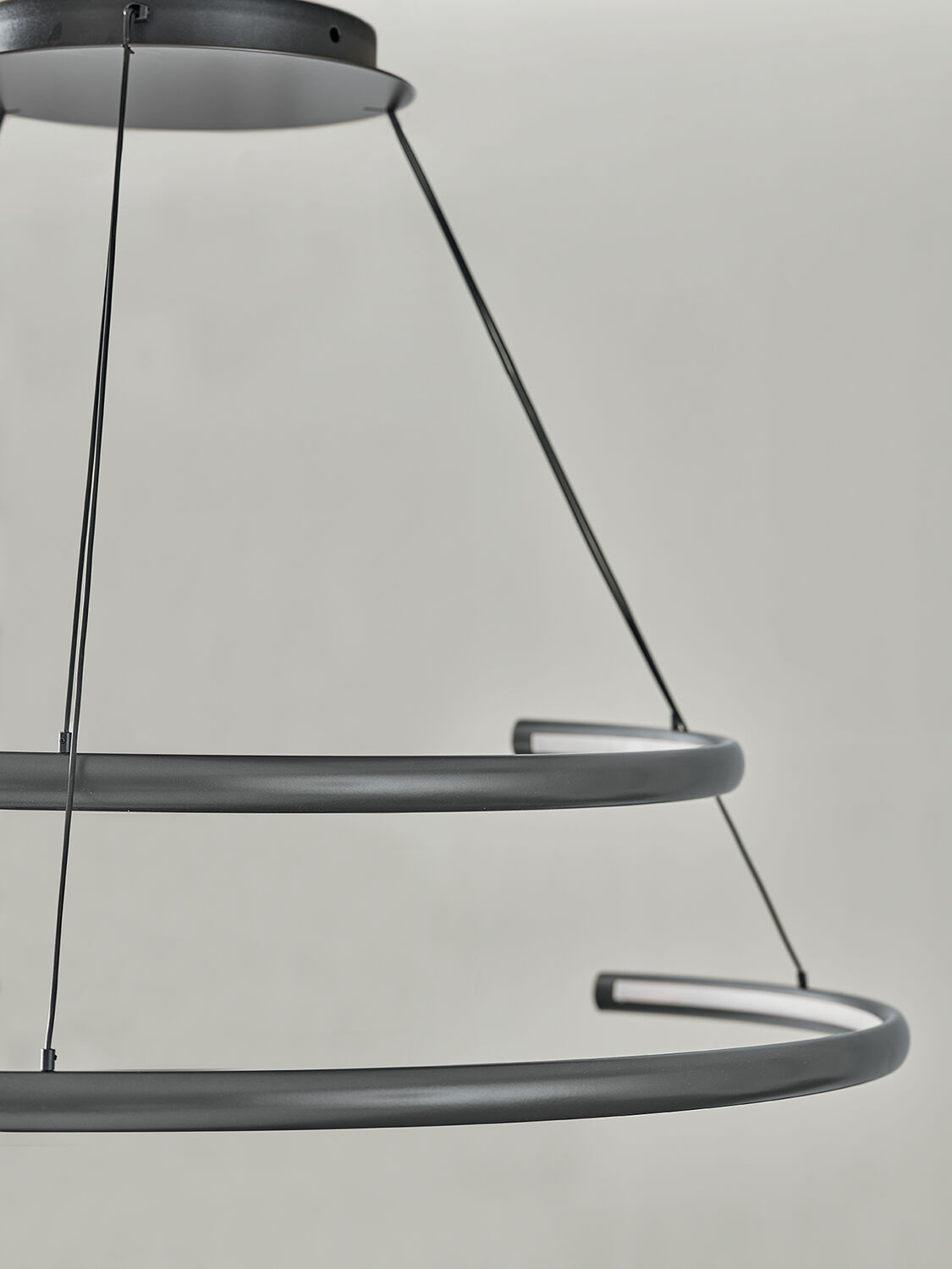 Lámpara de suspensión con florón negro y estructura de acero lacado latón oscuro. Incluye mando a distancia táctil para regulador de intensidad -Alcance 30 m - Receptor opcional.