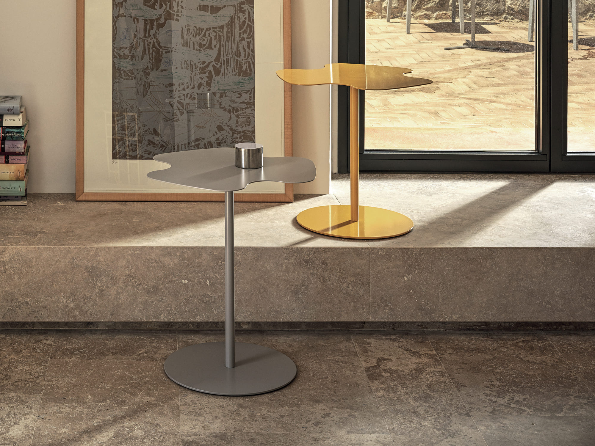 HOME // PRODOTTI // TAVOLINI, CARRELLI E POUFF // FLOWER Flower Tavolino con piano sagomato e struttura in Acciaio. Designed by Studio 28 Gino Carollo Variante Lunghezza (X) Altezza (Y) Profondità (Z) Versione 48cm 55cm 48cm 07.16 48cm 45cm 48cm 07.18 Finiture Struttura Struttura piano Metallo Laccato M097 Grigio chiaro M307 Testa di moro Metallo Laccato M310 Antracite M326 Argento naturale M306 Bianco M097 Grigio chiaro M055 Nero M327 Nero profondo M325 Oro M329 Oro rosa M328 Ottone anticato M028 Ottone scuro M312 Sabbia M307 Testa di moro Scheda tecnica