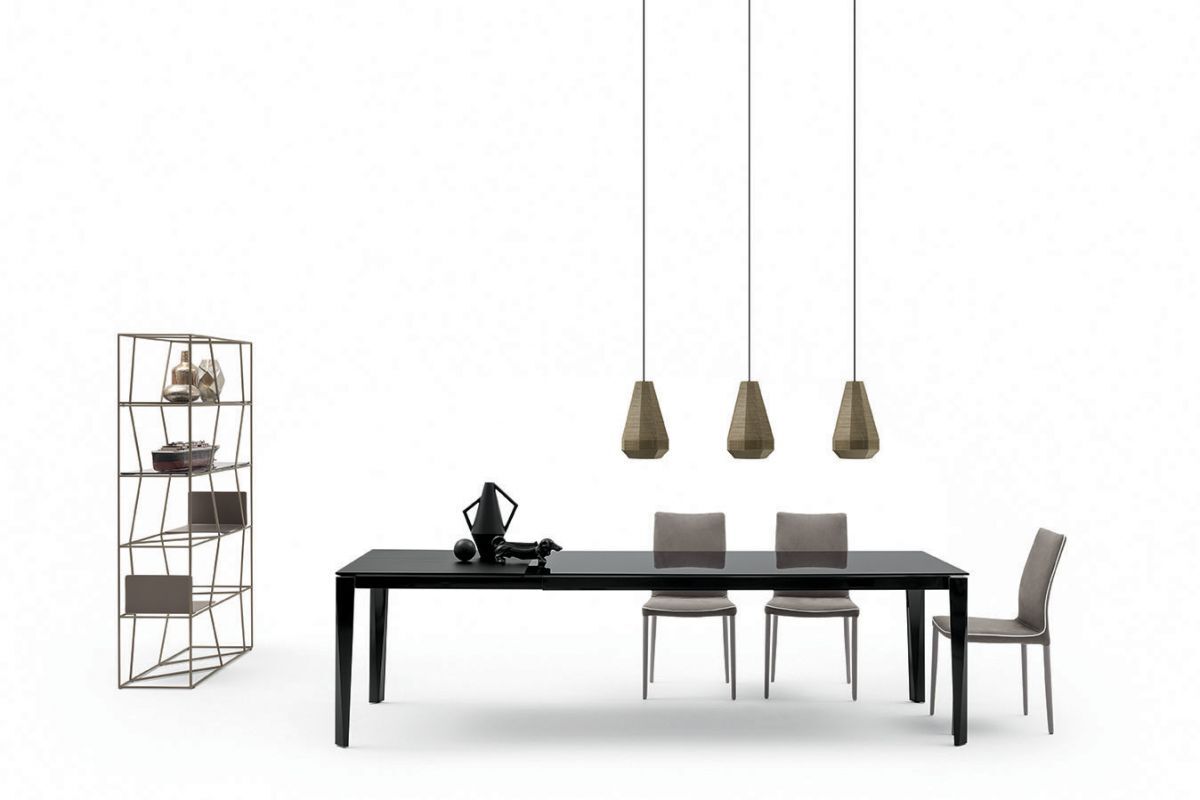 Table avec allonges, structure en métal laqué, plateau et allonges en mélamine, verre, verre anti-rayure, SuperCéramique ou SuperMarbre