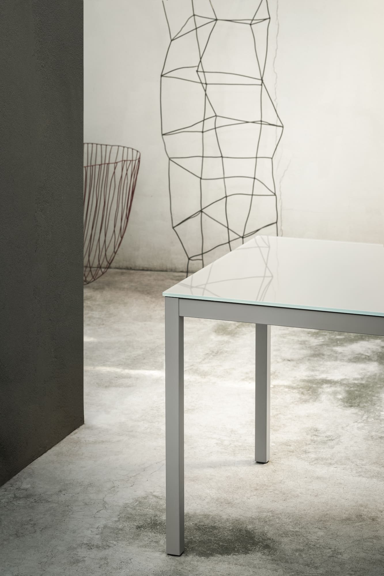 Table structure en Métal laqué. Plateau en mélamine, Unicolor anti-rayure, Verre ou Verre anti-rayure.