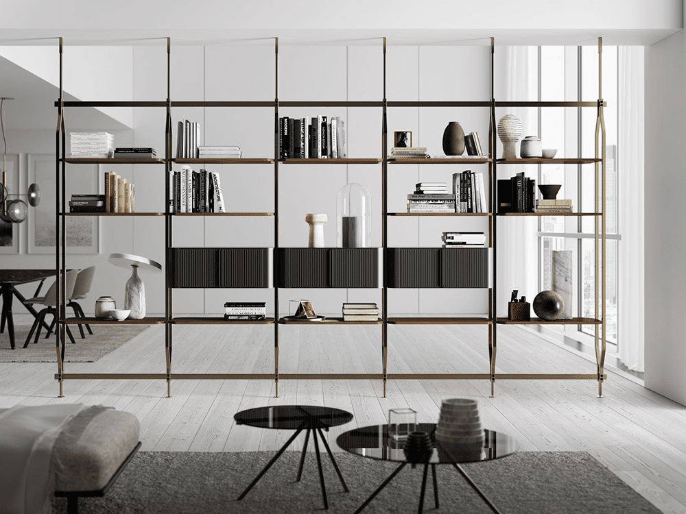Les bibliothèques sont des meubles polyvalents et adaptables. Elles donnent du caractère à une pièce simple, la transformant en un nouvel environnement design. Elles peuvent être utilisées comme cloison entre deux pièces de la maison, pour donner de l’importance à une pièce qui serait vide, ou pour donner une continuité aux pièces
