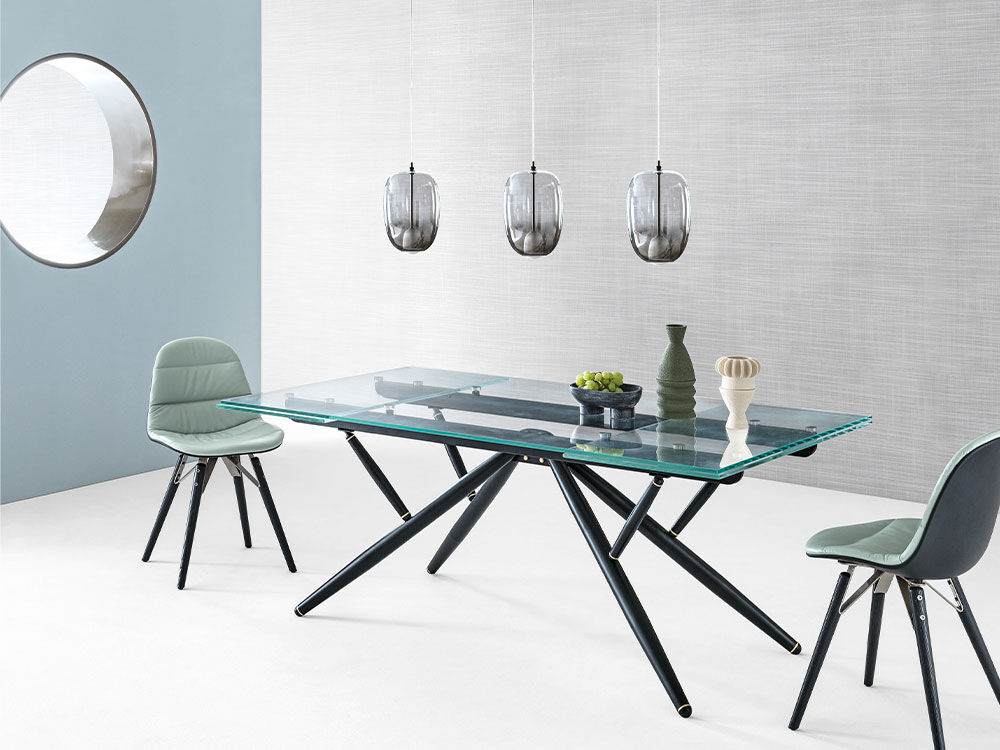 Les cuisines modernes comportent souvent des tables en verre, presque futuristes. Avec ces tables, les chaises en résine rendent très bien. Alors que les chaises en méthacrylate transparentes sont une excellente suggestion pour donner de la modernité à une table en bois foncé.