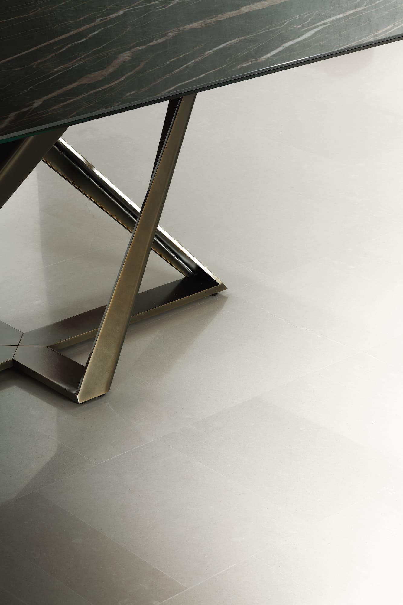 Table fixe ou avec allonges, structure en Métal laqué. Plateau en Bois massif, Bois centenaire massif, Bois plaqué avec bords en Bois massif, Bois plaqué, Bois laqué, Verre, Verre anti-rayure ou SuperCéramique.