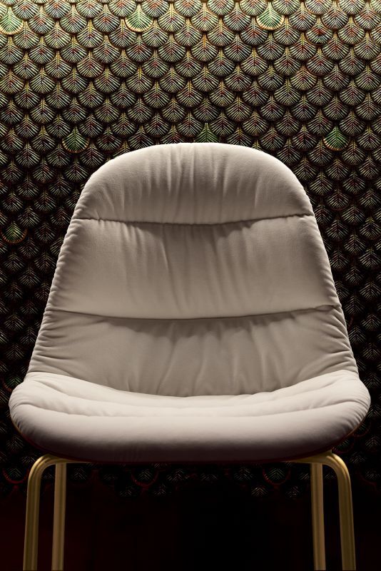 Tabouret avec structure en métal laqué, pieds triangulaires et coque en polypropylène rembourrée et revêtue en Cuir Éco, Cuir Éco Premium, Velours Technique, tessuto Nordic, Pure Virgin Wool, Velours, Tissu Kvadrat Field, Tissu Kvadrat Coda et Peau Premium.