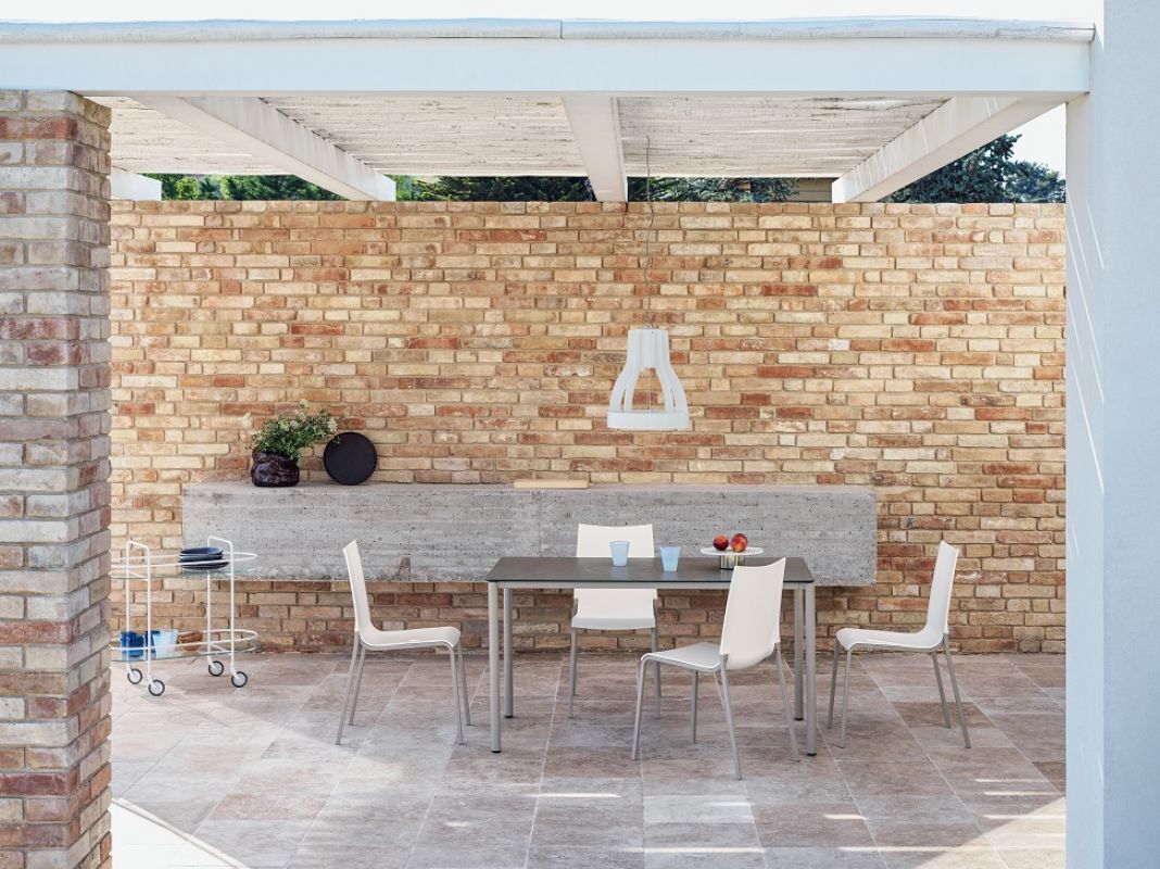 Table bass pour l'extérieur avec structure et détails décoratifs en Métal laqué. Plateau en Mélamine, Stratifié, Verre, Verre velvet anti-rayures, SuperCeramique and SuperMarbre.