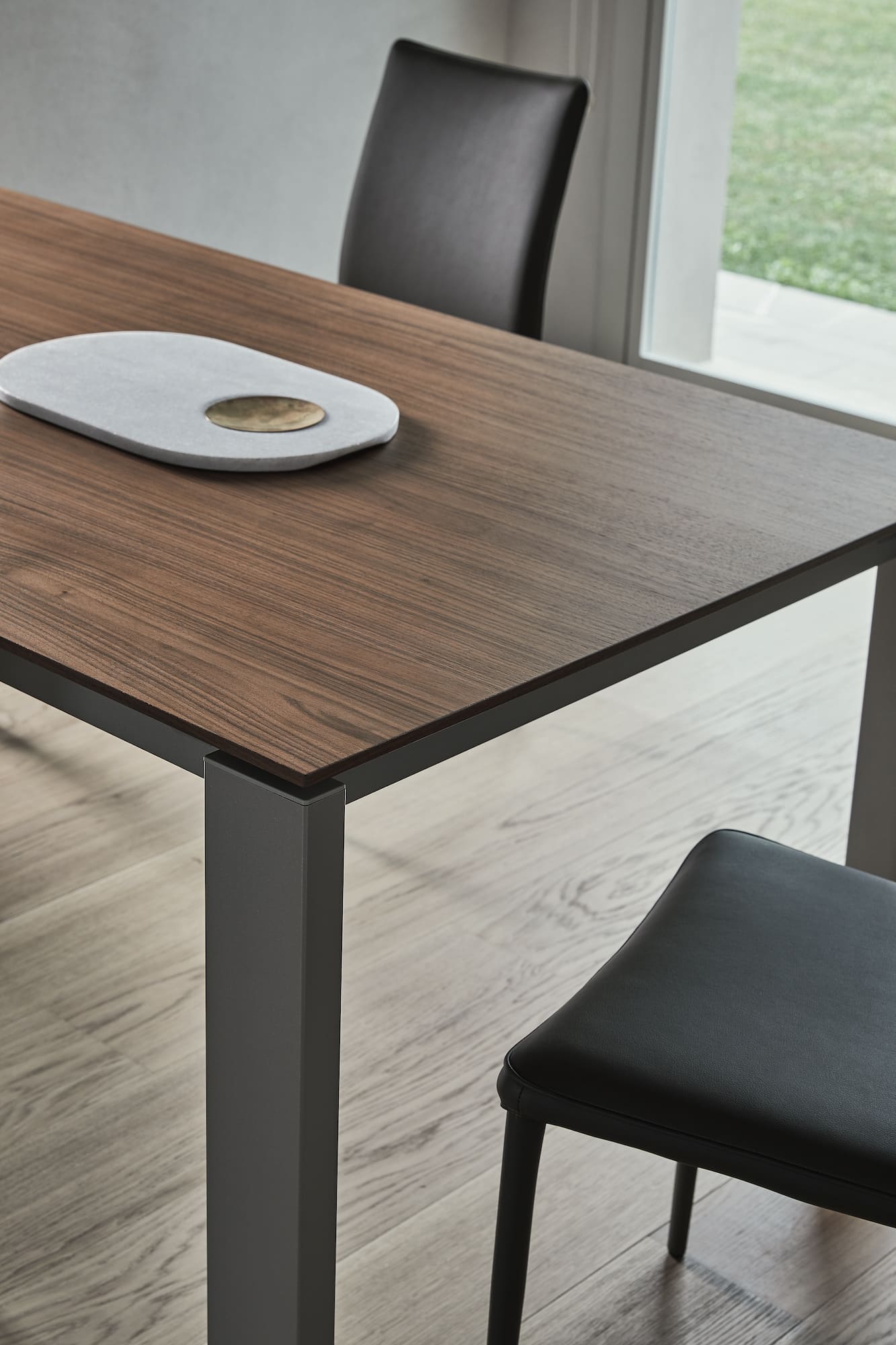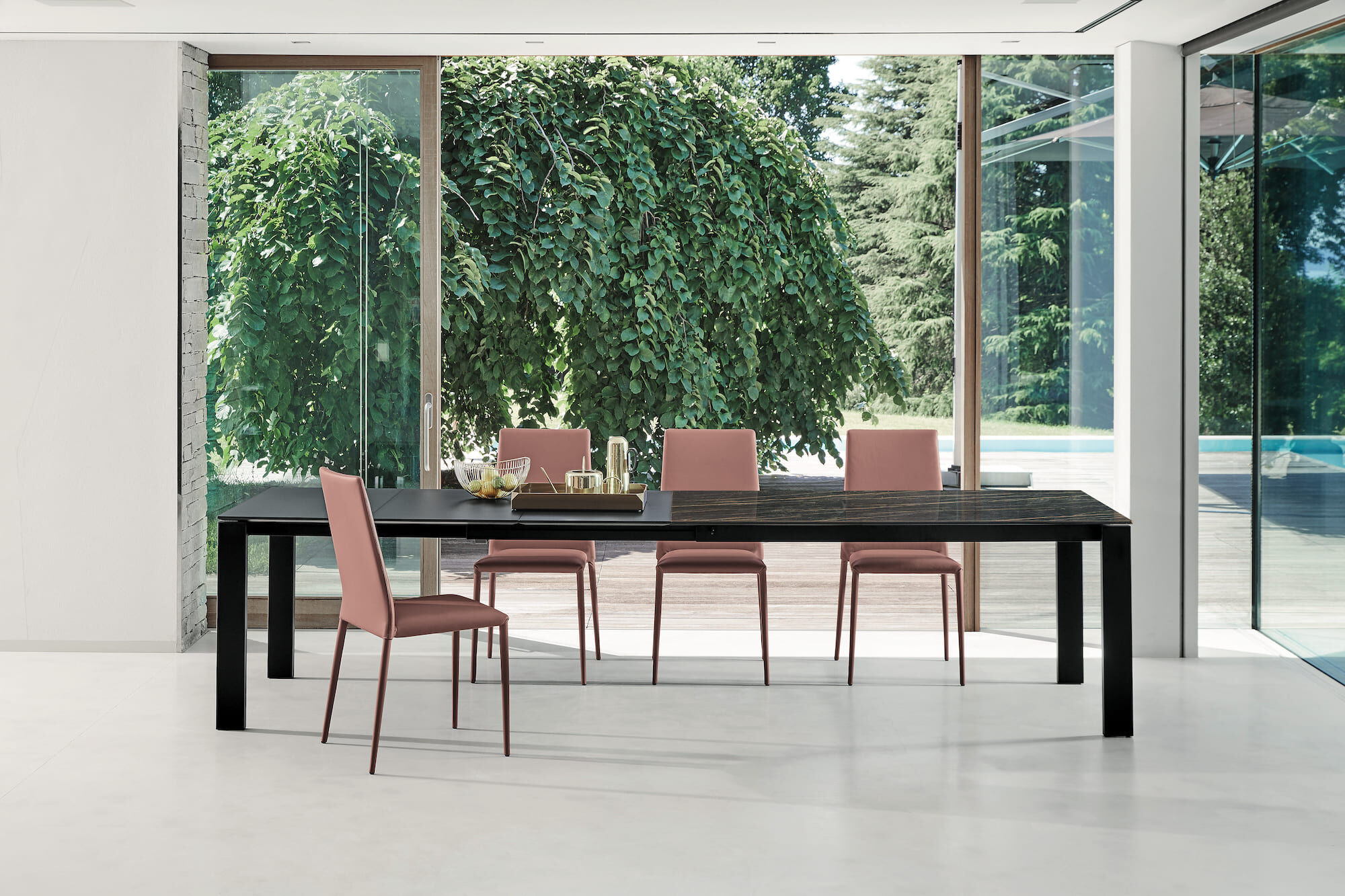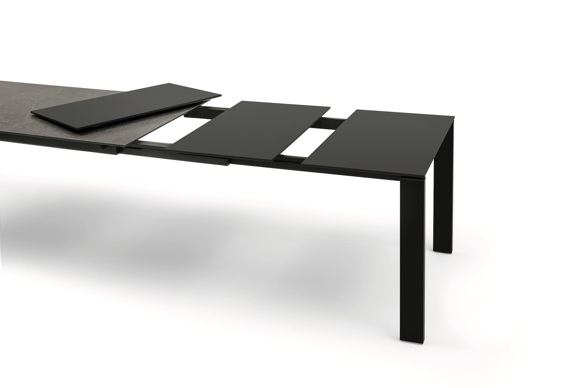 Table avec allonges, structure en Métal laqué. Plateau en mélamine, Verre brillant, bois plaqué, Verre anti-rayures, SuperCéramique et SuperMarbre.