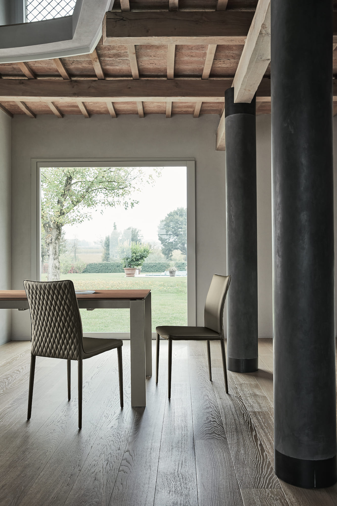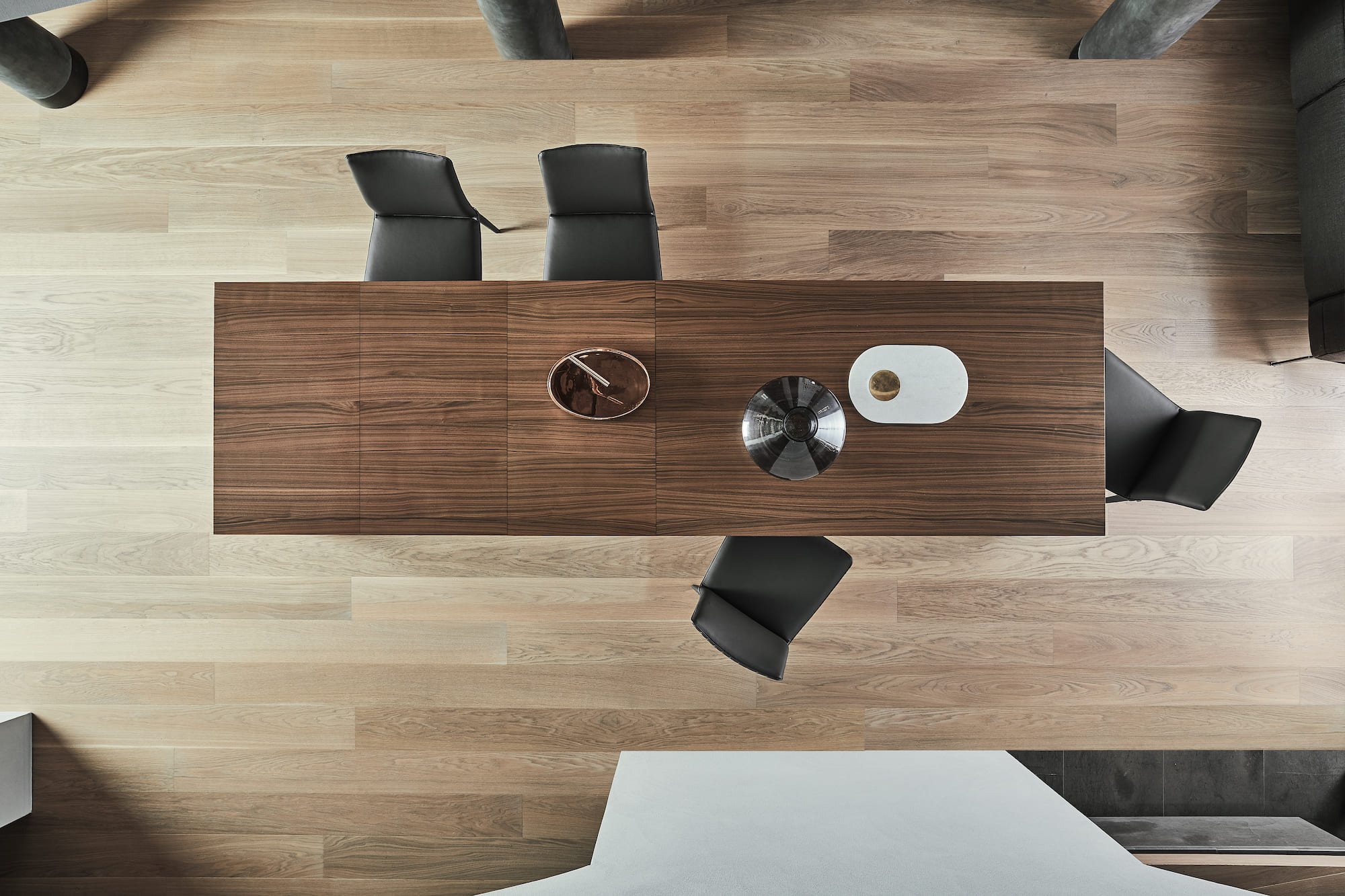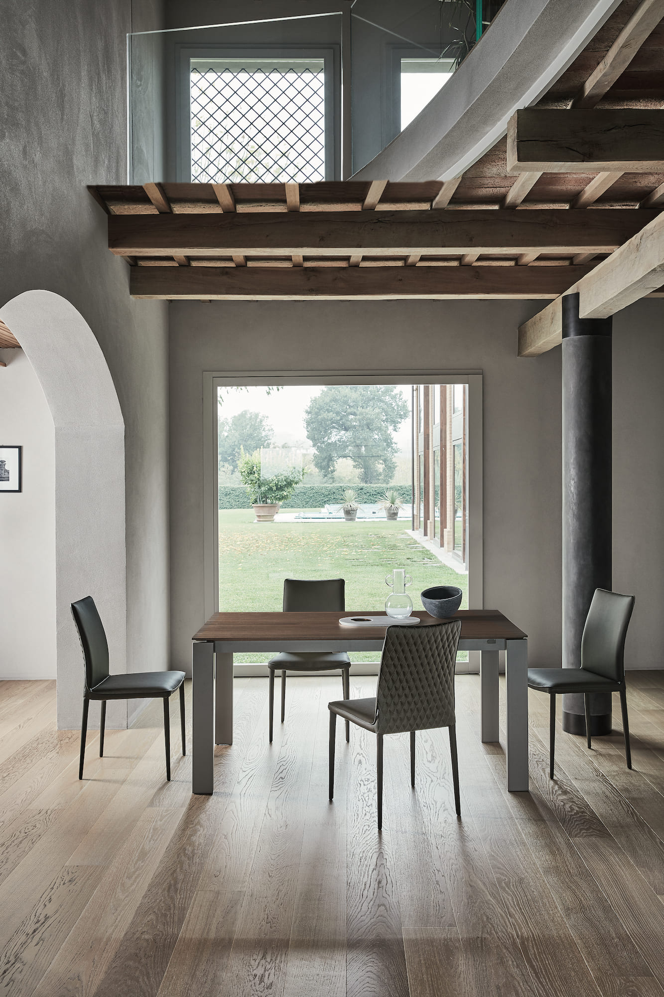 Table avec allonges, structure en Métal laqué. Plateau en mélamine, Verre brillant, bois plaqué, Verre anti-rayures, SuperCéramique et SuperMarbre.