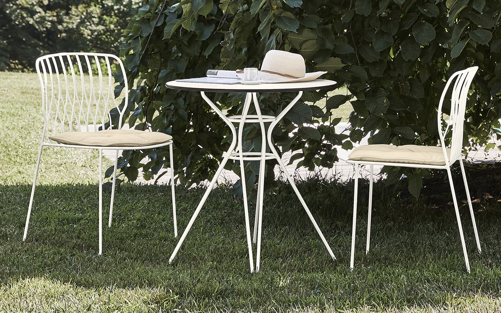 Socle pour l'extérieur en Métal inox, disponible pour plateaux en stratifié ou alu compact.