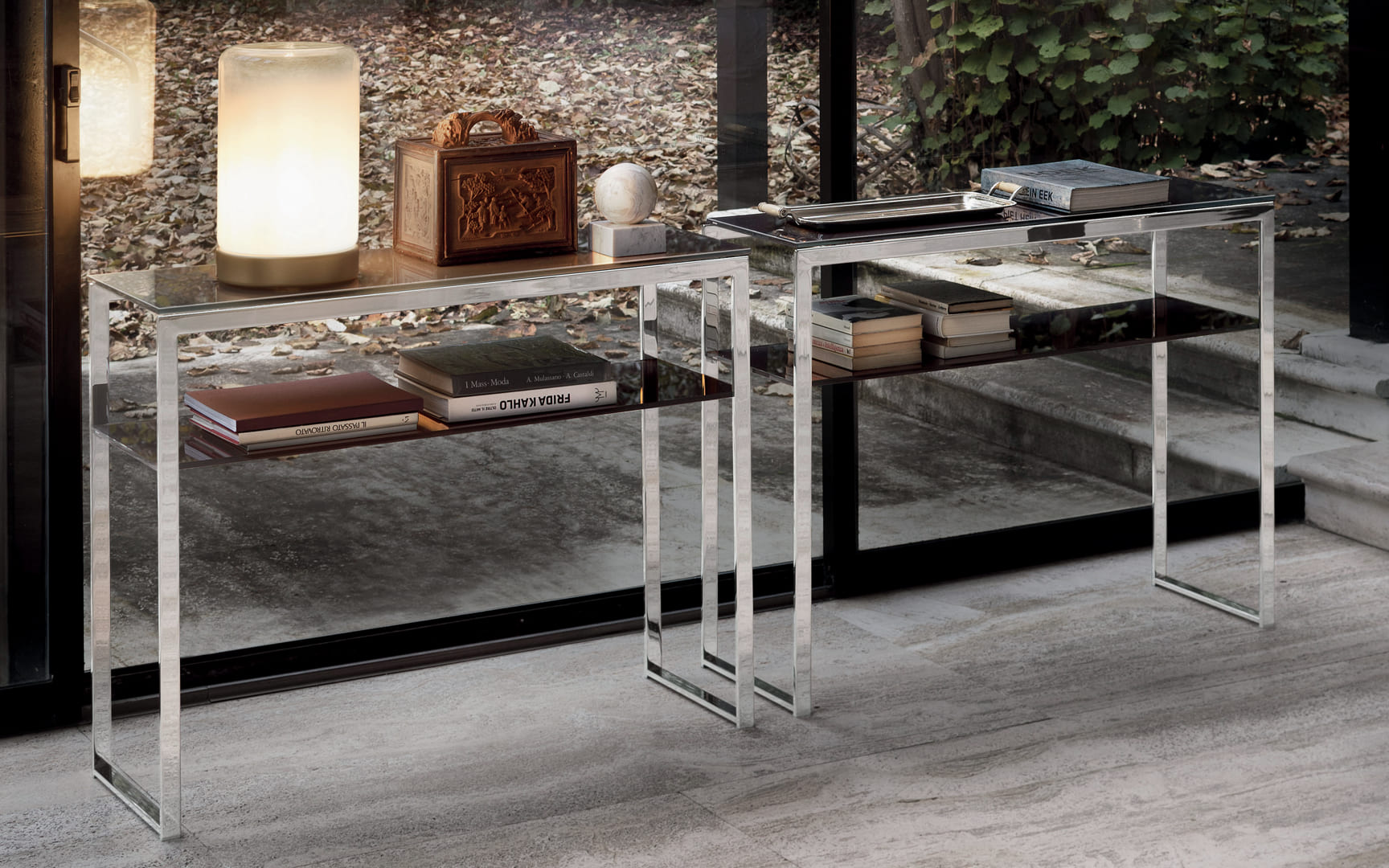 Tavolino con struttura in Acciaio e piano in Cristallo o Cristallo Antigraffio.