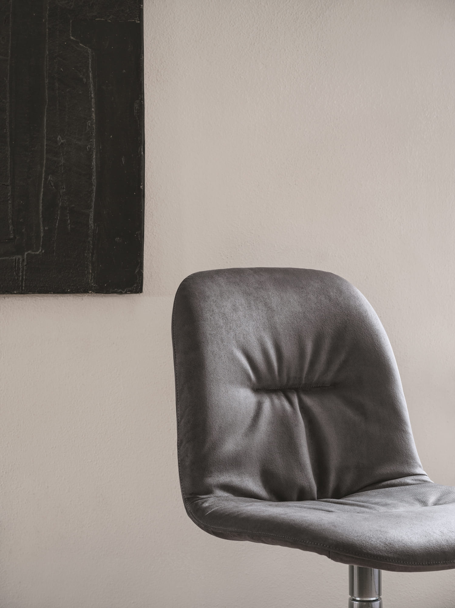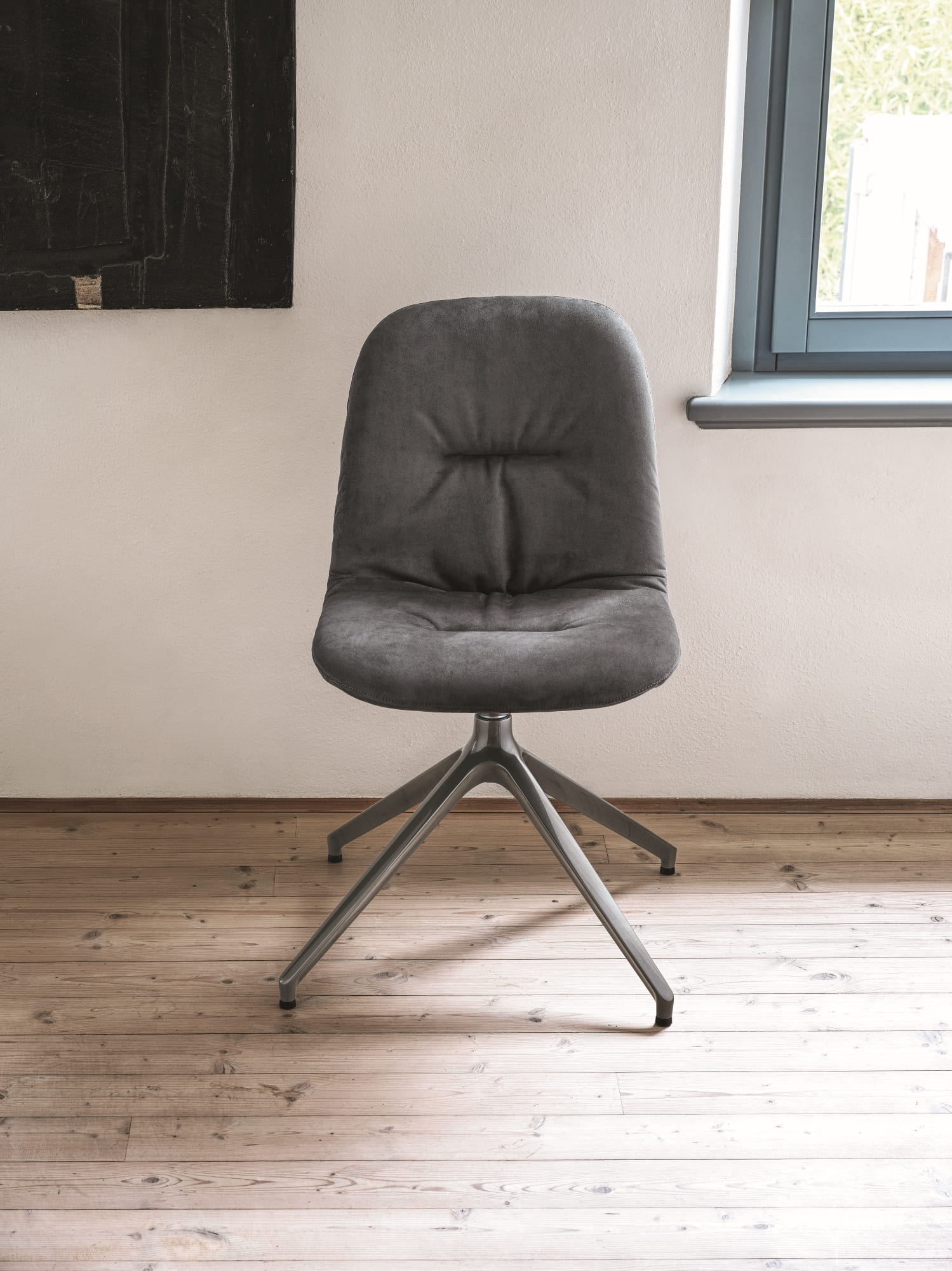 Стул со структурой из массива дерева и лакированной стали. Конические ножки, вращающийся с колесиками и без колёс из лакированного алюминия.