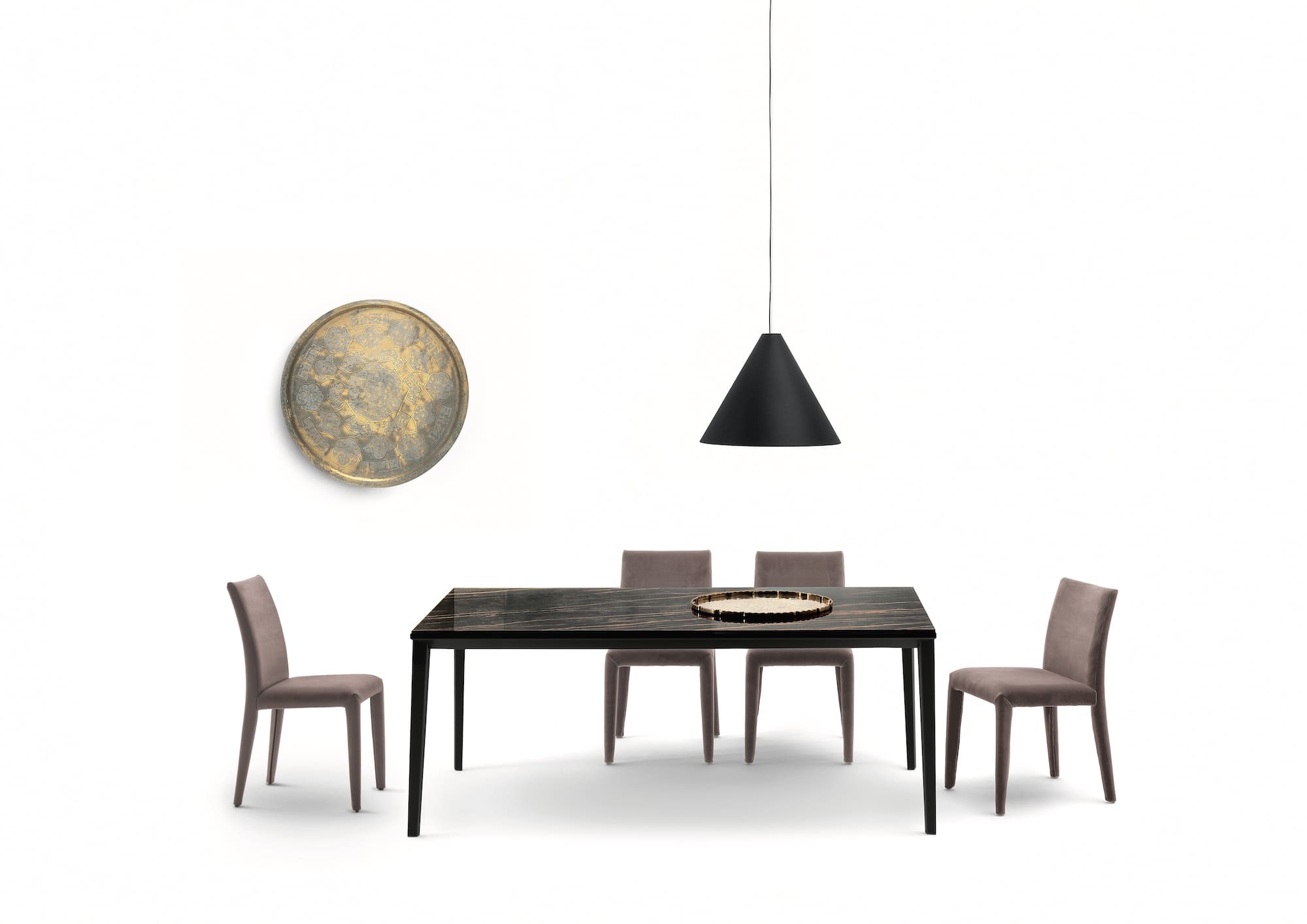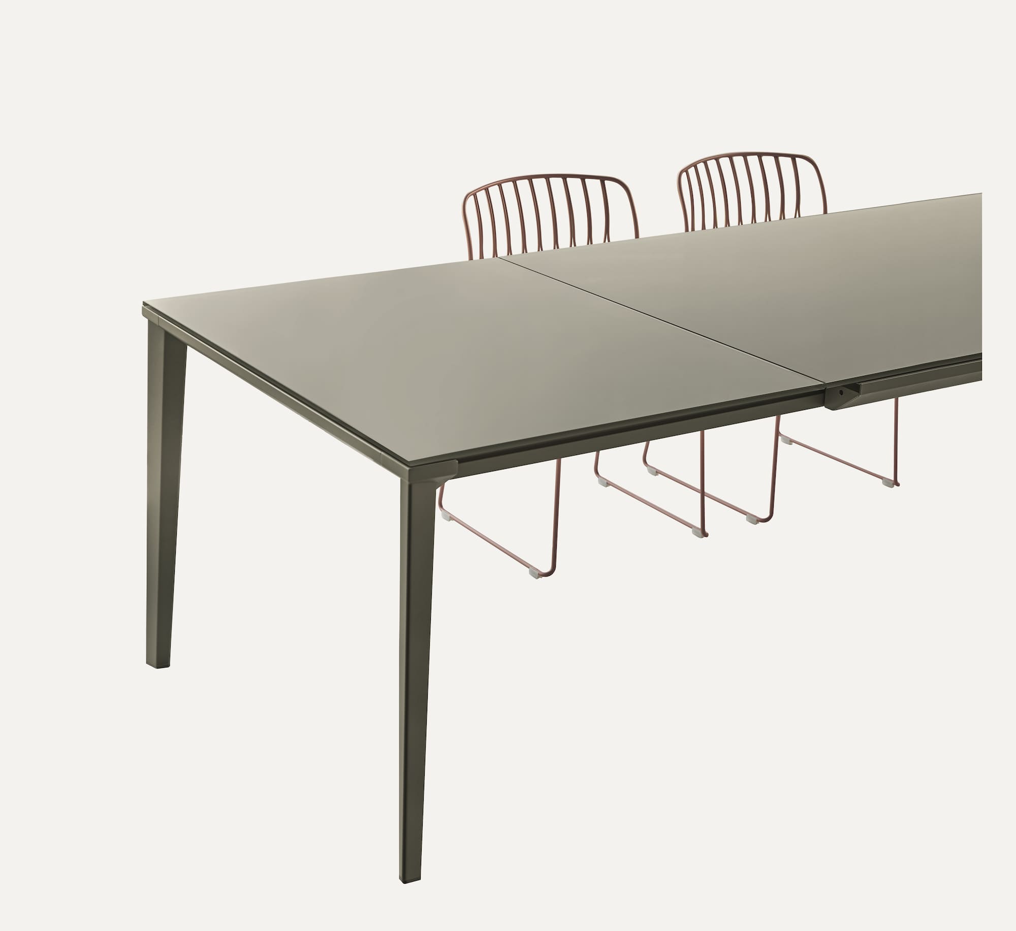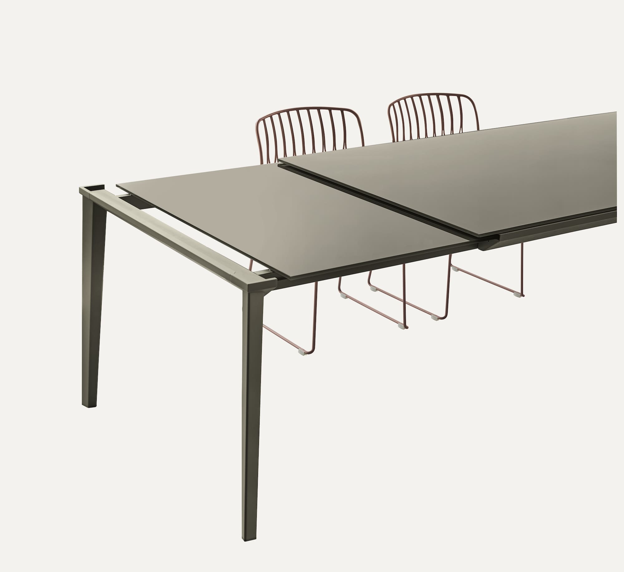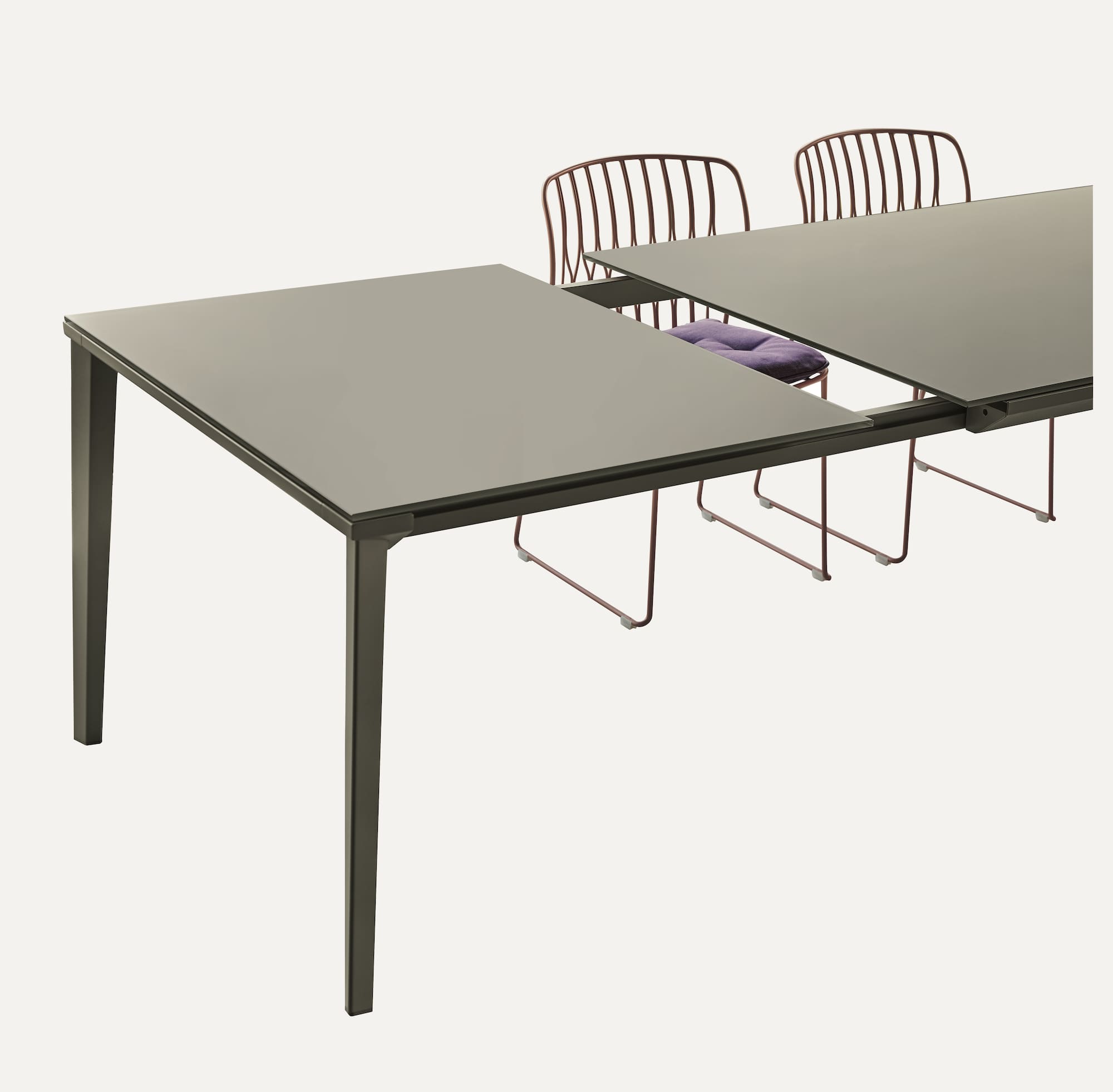 Стол раскладной со структурой из алюминия и лакированной стали, столешница и раскладки из стекла, стекла, устойчивого к царапинам, СуперКерамики и СуперМрамора.