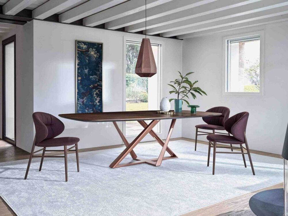 Столик со структурой из лакированной стали. Столешница из шпона, прозрачного стекла, стекла, устойчивого к царапинам и СуперМрамора.