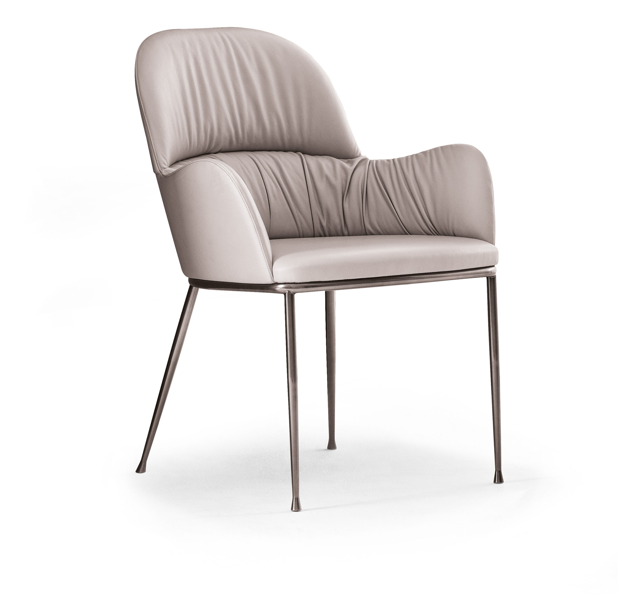 Стул с подлокотниками или без подлокотников, со структурой из массива дерева или лакированной стали. Сидение в обивке из экокожи, экологическая кожа премиум, технического бархата,ткани Nordic, чистой шерсти, бархата, , ткани Kvadrat field, Kvadrat Coda и кожи премиум.