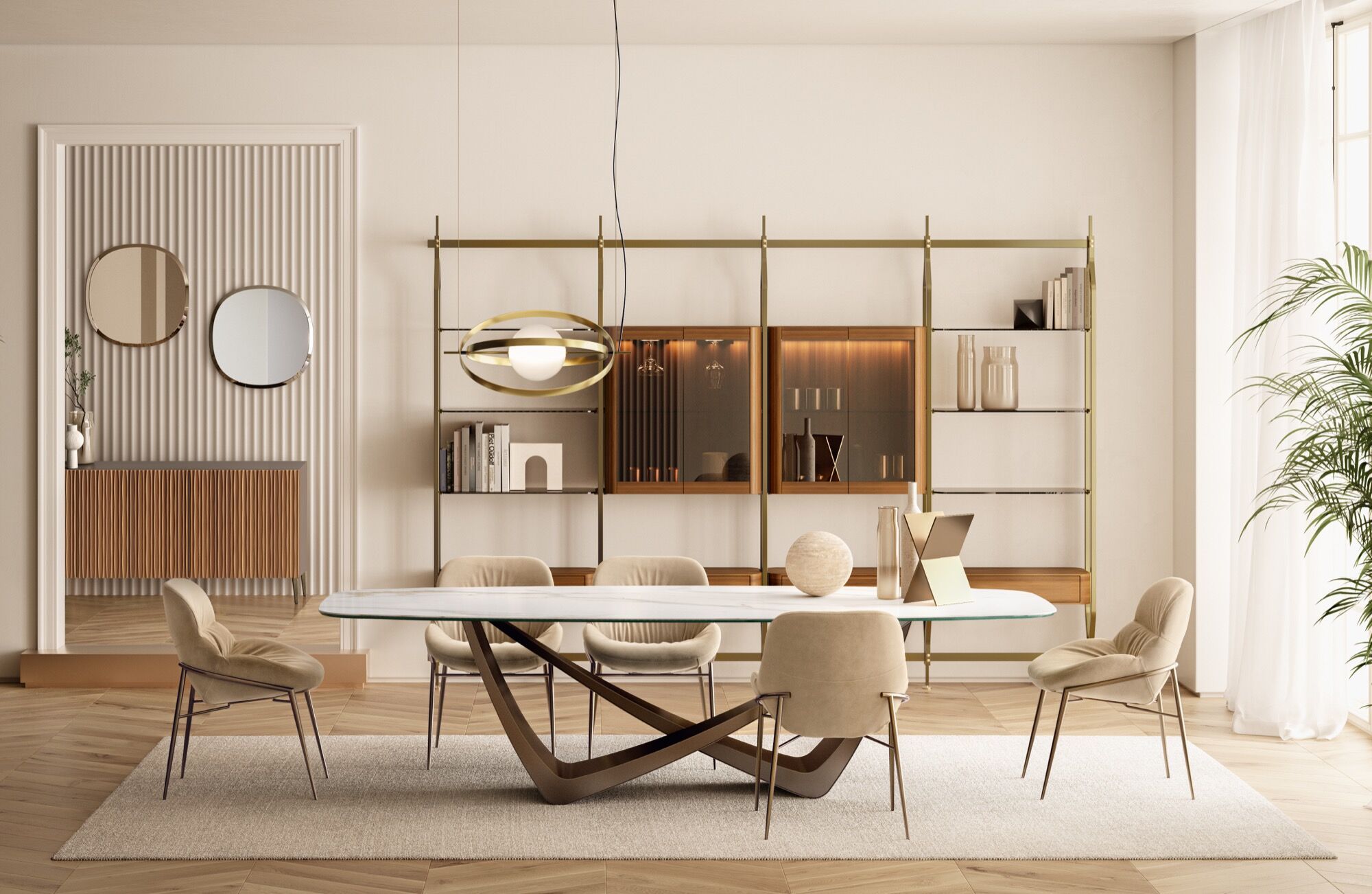 Barrel fix table with metal frame and top in Glass, Veneer, SuperCeramic and SuperMarble.